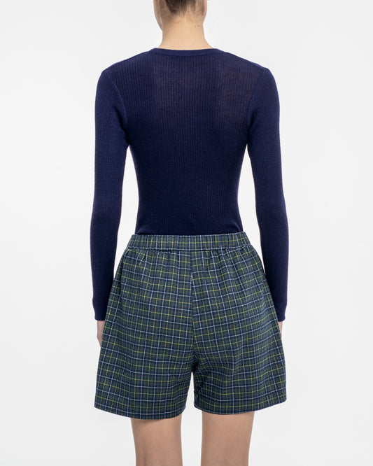 Second-Skin Ribbed Silk and Cashmere Long-Sleeve Top in Deep Navy