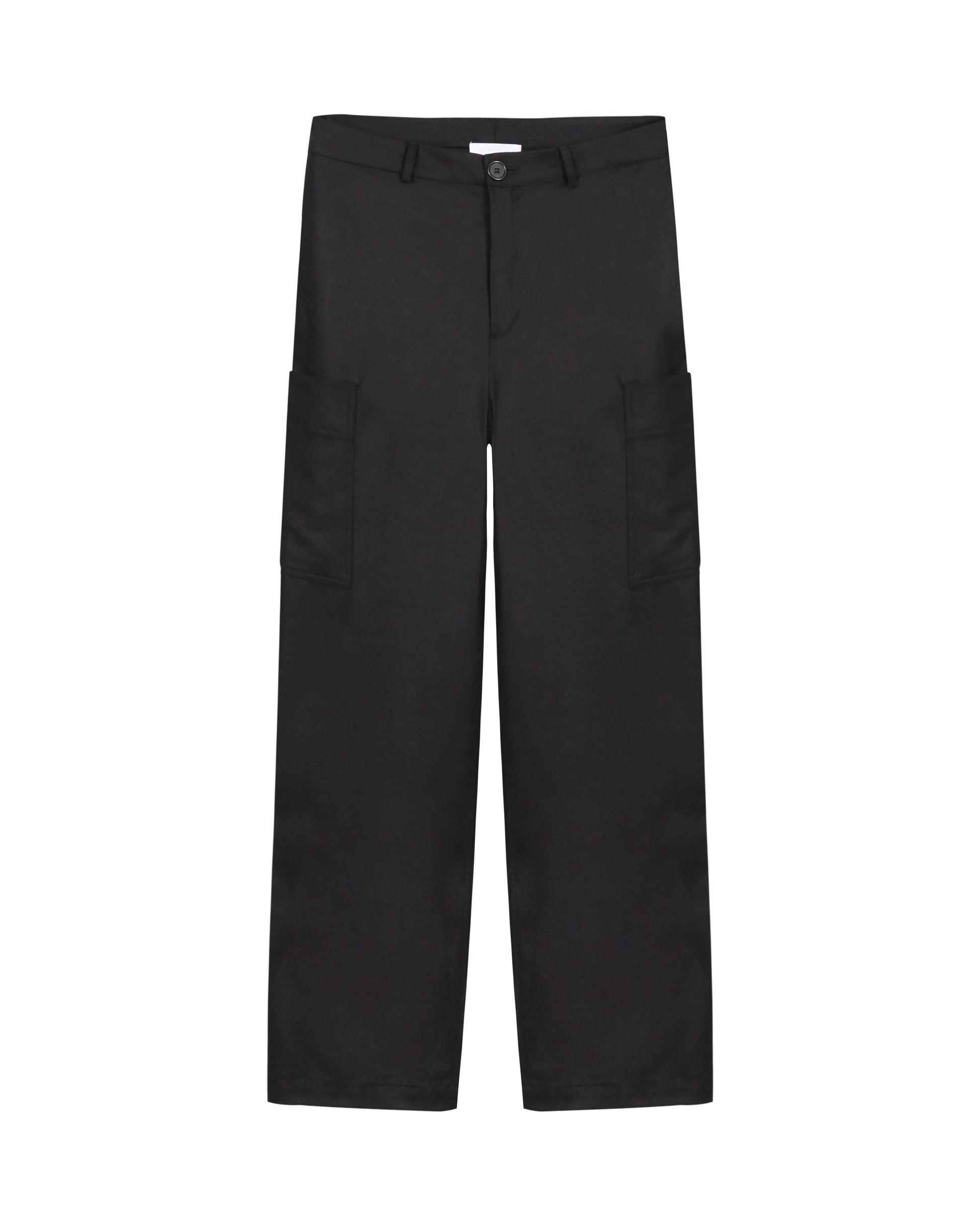 The cargo pant features low-waisted, oversized tailoring that delivers an effortlessly chic, edgy silhouette. Designed with functional side pockets and a statement oversized open pocket, these cargos balance utility and style in perfect measure.