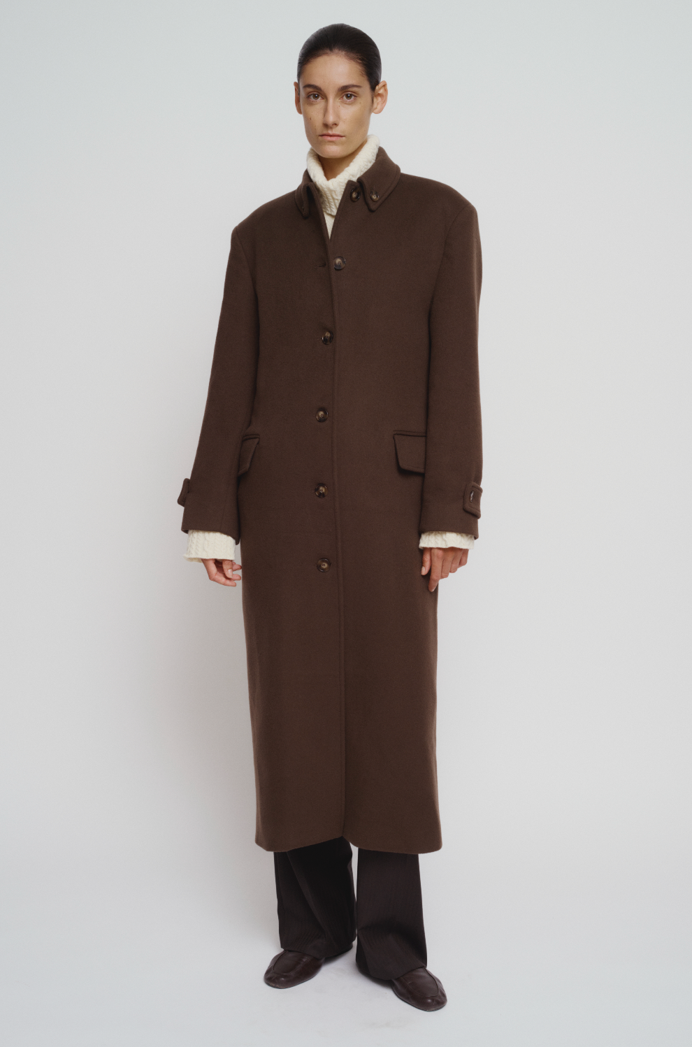 Inspired by the classic raincoat, this coat is a true state-of-the-art piece. Featuring a button-down collar and crafted from premium fabric, it combines timeless design with modern craftsmanship for a sleek, versatile outerwear essential.