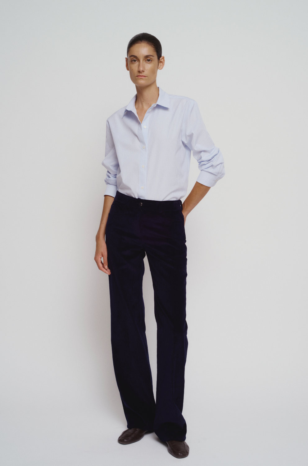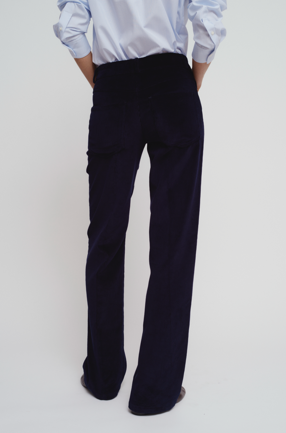 These long 5-pocket corduroy pants are designed for cool, effortless style. Crafted from soft, textured corduroy, they feature a relaxed fit with a straight leg silhouette, offering both comfort and versatility. Available in deep navy blue or warm brown.