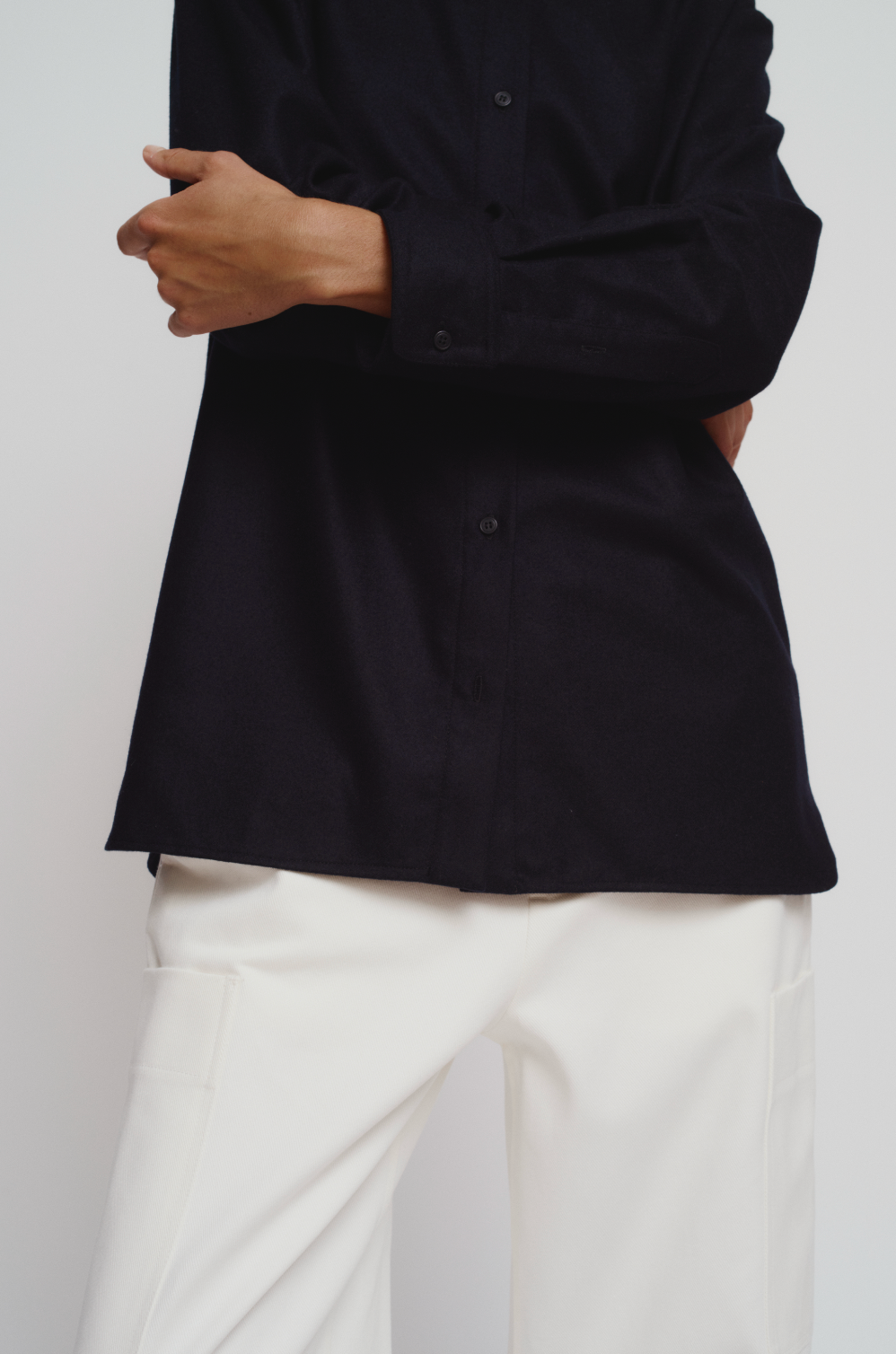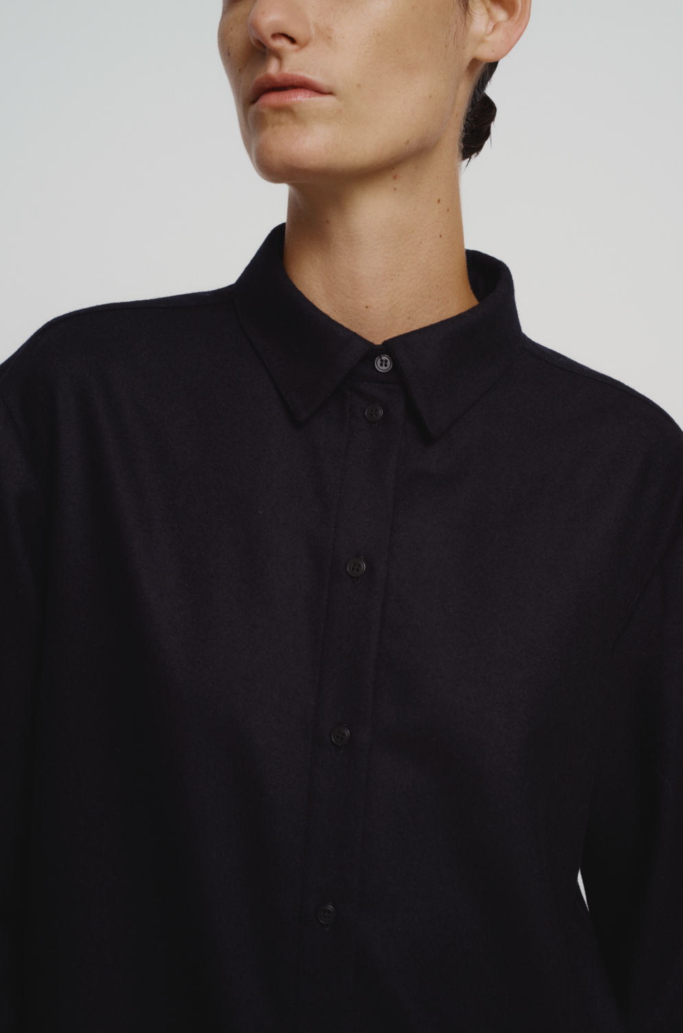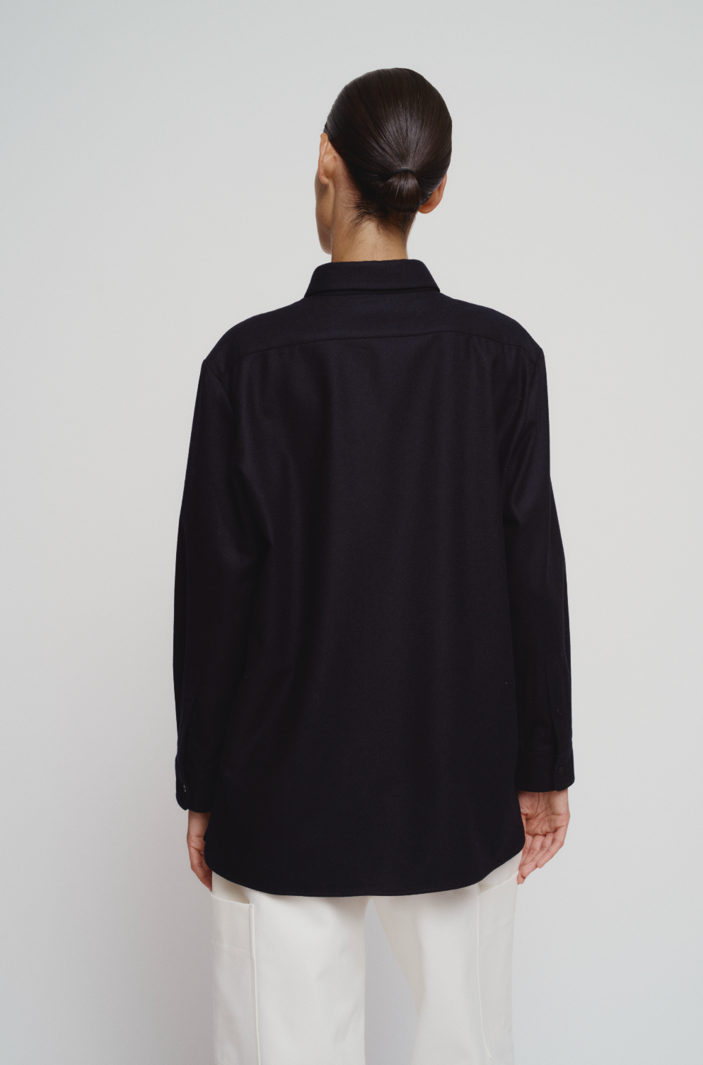 Straight long wool flannel shirt