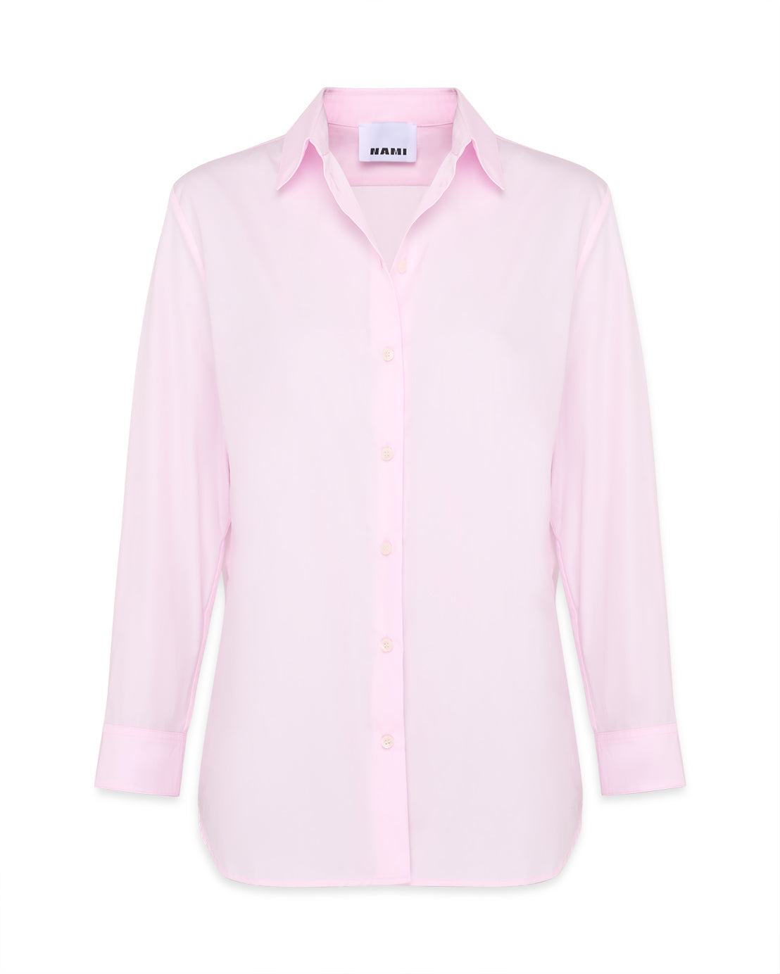 Straight, oversized long shirt crafted from crisp pale pink cotton. Designed with a clean buttoned front, classic collar, and elongated silhouette with relaxed volume. A precise balance of structure and ease, suitable for layering or wearing on its own.