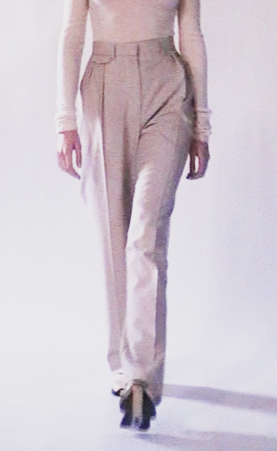 Thin stripe tailored pants in fine Italian fabric. Loose, relaxed fit with two pleats and a straight leg with subtle flare. Tiny latch pocket inspired by traditional tailoring. True to size and effortlessly versatile.